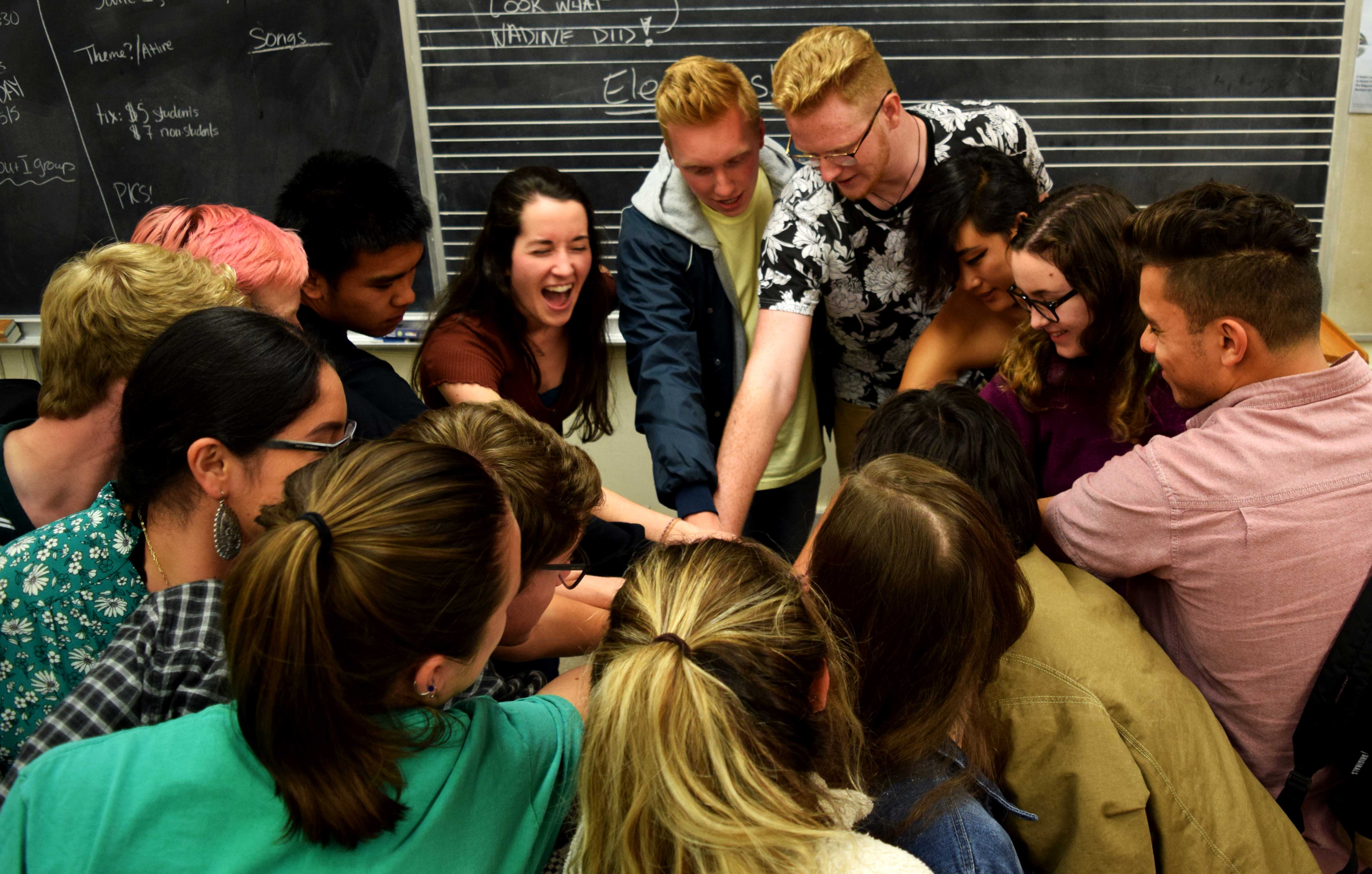 Rehearsal ended with a group huddle. Once all of the group members squished into a circle, they yelled, “One…Two…Three…TTK!”